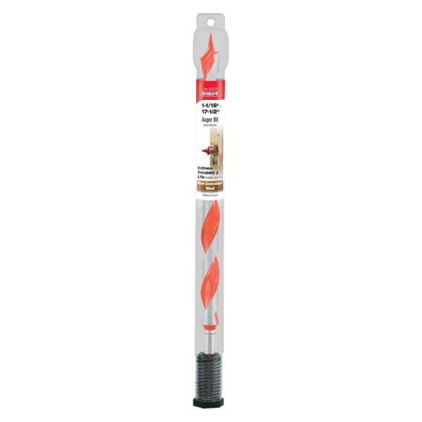 Diablo’s Auger Bit range provides maximum performance, extreme durability and superior life in nail-embedded wood applications. A two-step cutting action creates holes that are precise and clean. The self-feeding Dura-Tip™ pulls the bit while the dual cutting edge delivers an effortless, smooth drilling experience in wood with nails. Deep flutes enhance the chip evacuation process for more holes per charge. Quick change shank increases stability and durability in cordless and corded impact wrenches and drill drivers.