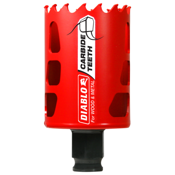 Diablo introduces Carbide Teeth Hole Saws, the first hole saws on the market to cut both wood and metal (wood, nail-embedded wood, plastic, aluminum, metal, cast iron, stainless steel and metal). Delivering up to 50X longer cutting life than bi-metal, these new carbide teeth hole saws offer faster cutting performance and increased productivity.