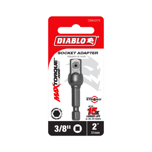 Diablo’s socket adapters deliver ultimate performance and maximum durability in converting impact and standard drill drivers into socket wrenches. An ultra-strength pin prevents slippage by securely griping sockets when tightening and removing nuts and bolts. These hi-performance adapters are compatible with standard and deep well sockets and allows users to convert impact and drill drivers into square socket wrenches. Torque Resistant Design absorbs torque for less stress on the adapter and the socket. This range is Impact Strong™, delivering increased shank stability and durability in cordless and corded impact and drill drivers. Only suitable for applications below 80 Nm. For heavier applications, such as wheel changing, we recommend using sockets directly with an impact wrench.