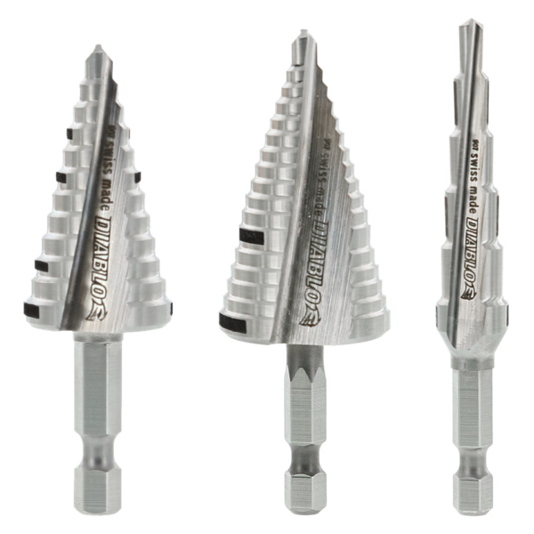 Diablo’s Impact Step Drill Bits bring exclusive technology to the Electrician, Plumber and HVAC contractor with fast, accurate cuts and increased stability in thin metals, PVC other plastic materials. The innovative Split Point Tip design enables a fast, on-point start resulting in increased durability and up to 6X longer life. Diablo’s Impact Strong Step Bits are impact ready and compatible with drills and impact drivers. An automated precision grinding process on each step reduces wear and delivers up to 2X faster cuts. Multiple hole sizes are made easy with laser etched step markings while increased step heights for common hole sizes makes drilling holes more efficient and faster.