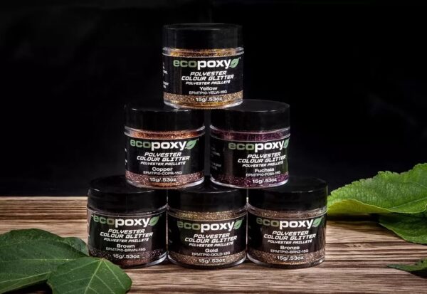 Precision-Cut Glitters That Truly Sparkle This Polyester Color Glitters set is precisely cut from premium vacuum-metalized polyester film. The brilliant nature of these specialty glitters means they are compatible with, and naturally complement, EcoPoxy resins. Mix Polyester Color Glitters with a thin topcoat, such as UVPoxy, and the flecks will remain suspended and visible on the topmost layer, giving your project a lustrous sparkle! Use glitters to create stunning art projects, river tables, bespoke jewelry, and so much more! It can also be blended with Liquid Color Pigments and Metallic Color Pigments to create a truly custom look to enhance your project and complement any decor. Unique Topcoat Effects With Color Glitters For the best effect, mix with a thin topcoat, such as UVPoxy, to keep the glitters suspended and visible on the topmost layer. Even Blending It can be blended to create a lustrous look that will enhance your project and complement any decor. They are specially formulated to suspend in our epoxies for even mixing. Once glitters are added to the epoxy, follow the EcoPoxy resin products’ mixing guidelines to ensure proper blending. Use A Color Glitters Set For Limitless Creativity Currently available in 12 unique colors. Polyester Color Glitters are precisely cut from premium vacuum-metalized polyester film. They can be mixed with Liquid Color Pigments or Metallic Color Pigments to create custom combinations and effects. Available in 15g units or as a set of all 12 colors. Check out Metallic Pigments and Liquid Pigment for more coloring options! Check out EcoPoxy’s Official Website for more information! https://www.youtube.com/watch?v=_FVPbERt6CQ